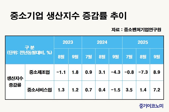 정부 소비부양책에 중소기업 생산·판매 ‘활기’ 중소벤처기업연구원, 고환율·관세 등 대외리스크는 여전 정부의 소비부양책에 힘입어 중소기업 생산과 판매가 활기를 띠며 소비 중심의 회복세가 이어지고 있다. 중소벤처기업연구원이 최근 발표한 ‘KOSI 중소기업 동향 202...