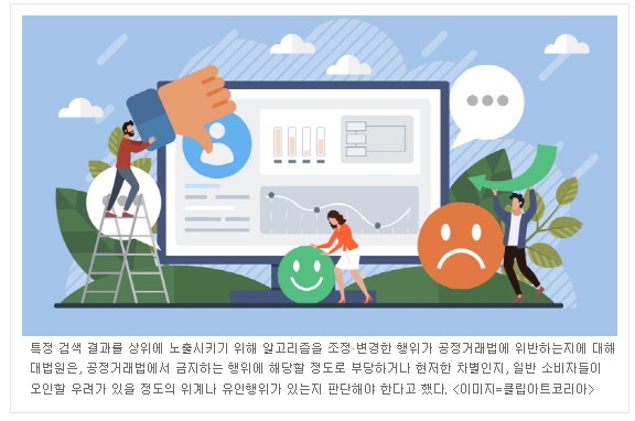 이 회사가 특정 검색 결과를 상위에 노출시키기 위해 알고리즘을 조정·변경한 행위가 공정거래법에 위반하는지 여부에 관하여 대법원이 최초로 판단한 최신 판례를 소개한다.