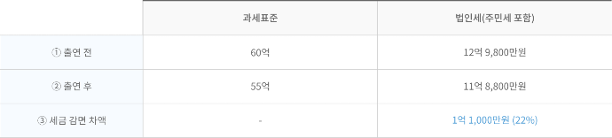| ③ 세금 감면 차액 | - | 1억 1,000만원 (22%) |