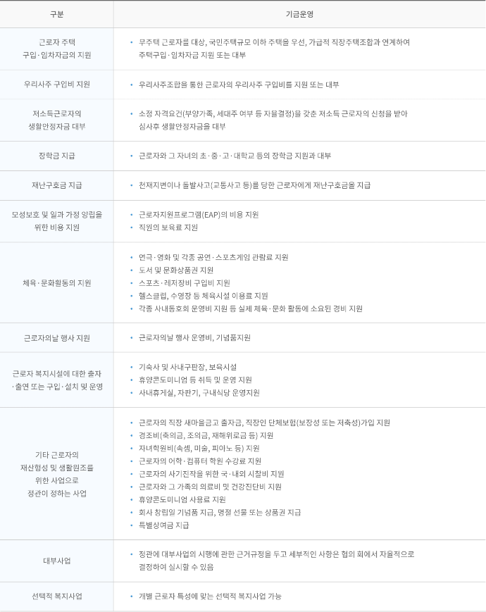 재산형성 및 생활원조를 위한 사업으로 정관이 정하는 사업 |
