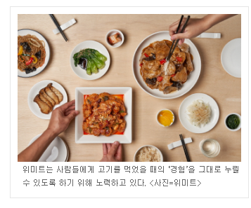 문제는 맛이 없다는 편견이다. 씹었을 때 ‘팡’하고 터지는 육즙의 시원함과 쫀득한 식감은 여전히 기술의 한계로 인해 완벽히 구현하지 못한다. 위미트(WEMEET)는 이러한 고민에서부터 시작했다. 채식을 선택한 사람에게 ‘맛있는’ 음식을 다양한 경로로 먹을 권리를 부여하겠다는 것이 위미트의 철학이다.