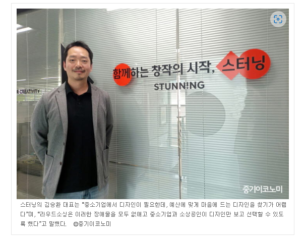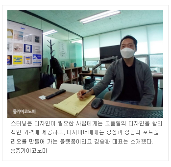 중기이코노미와 만난 스터닝의 김승환 대표는, 스터닝은 디자인이 필요한 모든 사람들에게는 고품질의 디자인을 합리적인 가격에 제공하고, 디자이너에게는 성장과 성공의 포트폴리오를 만들어 가는 플랫폼이라고 소개했다. 국내 디자인 플랫폼 스터닝에서는 국내 디자이너의 약 77%에 해당하는 약 28만명의 디자이너가 활동하고 있다고 한다.