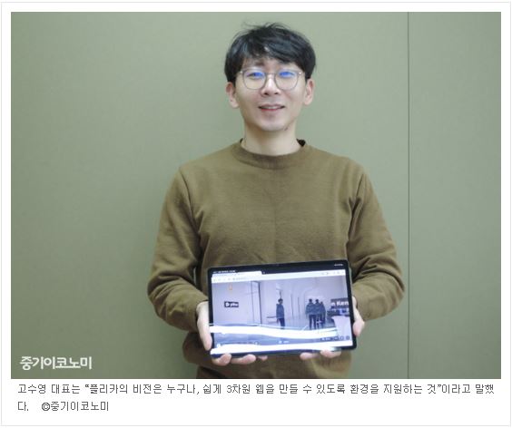 중기이코노미와 만난 플리카(plika)의 고수영 대표는 그래서 메타버스를 가리키며 ‘신기루’와 같다고 표현했다. 이런 이유로 플리카의 목표는 명확하다. 일반인에게 손에 잡히지 않아 신기루와 같았던 3차원 웹을 별도의 기술이 없거나, 특별히 뭔가를 설치하지 않아도 스스로 구현할 수 있도록 환경을 조성하는 것이 플리카의 지향점이기 때문이다.