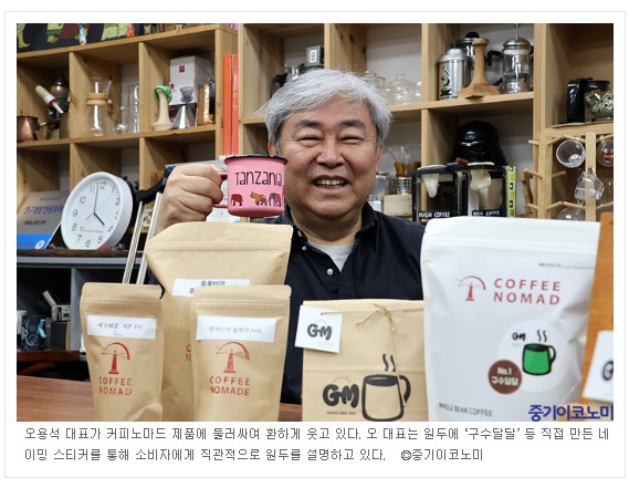 커피노마드(COFFEE NOMAD) 오용석 대표는 광명시에 위치한 사무실을 찾은 중기이코노미 기자를 위해 직접 에티오피아 시다모(Sidamo) 지역에서 난 커피를 내리며 살짝 격앙된 톤으로 말했다. 커피를 바라보는 눈빛과 말하는 표정, 목소리 톤에서 커피에 대한 그의 애정을 엿볼 수 있었다.