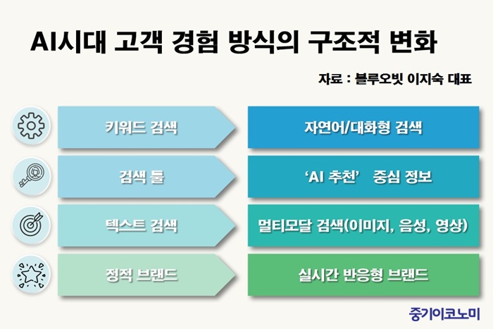 기능 평준화시대 고객 경험이 브랜드 가치 결정 고객과의 모든 접점에서 가치가 일관되게 전달되도록 시스템 구축을 “기술이 상향 평준화된 시대에 기능만으로는 차별화를 꾀하기 어렵습니다. 이제 고객은 제품 그 자체가 아니라 브랜드와 함께 보낸 ‘시간’과 ‘경험’을 기억합니다. AI 시대의 생존 전략...