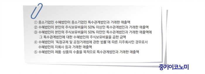 위 과세제외매출액 내용 가운데 가장 의미있는 매출액은 바로 중소기업인 특수관계법인과 거래한 매출액이다.