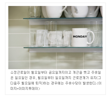 쉽게 말하면 평일 동안 근무일에 결근하지 않으면, 하루는 일당을 받으며 쉴 수 있다.