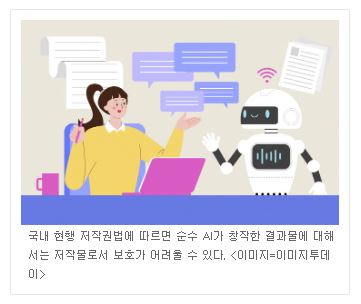 또한 김 변호사는 국내 현행 저작권법에 따르면, 순수 AI가 창작한 결과물에 대해서는 저작물로서 보호가 어렵다고 분석했다. 기업에서 업무를 위해 챗GPT 등의 생성형 AI을 활용해 결과물을 만들었다면, 기업의 임직원이 직접 업무상 작성한 결과물과는 달리 저작권법상으로 보호받지 못할 수 있다는 것이다.