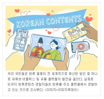 실제로 해외의 한류 콘텐츠 경험자들이 한류를 접한 경로를 보면, 플랫폼의 역할이 컸다는 사실을 확인할 수 있다.