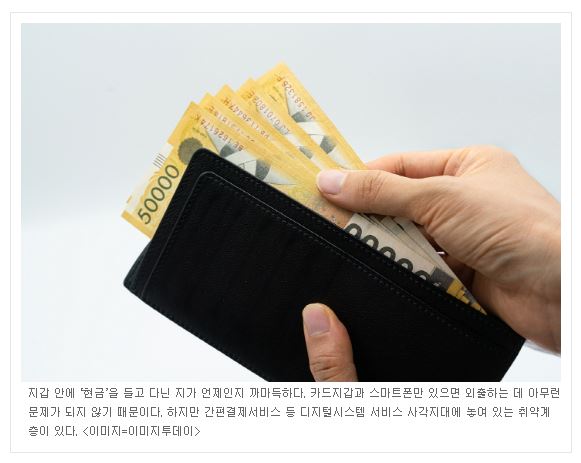 위 사례가 생소한 이유는 ‘지폐’가 없어도 되는 세상에서 ‘지폐’를 요구당했을 때의 이질감이 크기 때문이다. 그러고 보니 지갑 안에 ‘현금’을 들고 다닌 지가 언제인지 까마득하다. 생각해 보니 지갑을 없앤 지가 꽤 됐다. 카드지갑과 스마트폰만 있으면 외출하는 데 아무런 문제가 되지 않기 때문이다.