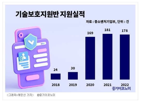 2018년 24건의 기술보호 지원을 했던 기술보호지원반은 지난해 178건을 지원하며 중소기업 기술보호를 돕고 있다.