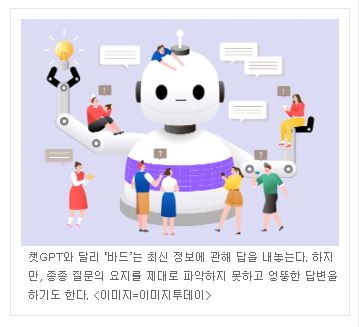 ◇챗GPT와 달리 최신 정보도 답한다=챗GPT와 구분되는 바드의 가장 큰 특징은 최신 정보에 관해 답할 수 있다는 점이다. 챗GPT는 2021년 9월까지의 데이터만 학습했기 때문에 최근 일어난 일에 관해서는 제대로 답변하지 못한다. 반면 바드는 구글 검색을 통해 실시간 정보에 접근해 적절한 답변을 제공한다.