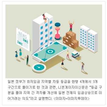 최근 일본 정부가 최저임금 지역별 차등 등급을 현행 4개에서 3개 구간으로 줄이기로 한 동향이 주목된다. 무려 45년 만의 개정이라고 한다.