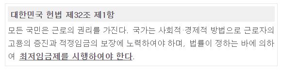 최근에는 최저임금제도 자체를 폐지하자는 극단적인 의견도 있었다. 최저임금제도 자체는 헌법 제32조 제1항에 국가의 의무로 규정된 것이므로, 최저임금제도 자체를 폐지하자는 것은 현행 헌법체계하에서는 위헌적 주장이 될 수 밖에 없다. 최저임금제를 폐지하려면 개헌을 하는 방법이 현재로서는 유일하다.