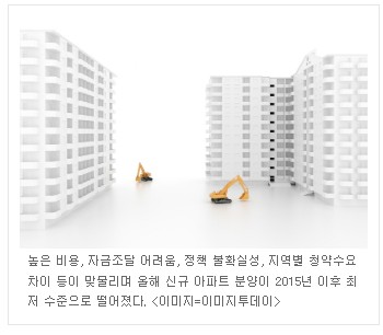 높은 비용, 자금조달 어려움, 정책 불확실성, 지역별 청약수요 차이 등이 맞물리며 올해 신규 아파트 분양이 2015년 이후 최저 수준으로 떨어졌다. 미국의 상호관세(reciprocal tariffs) 논란으로 경기둔화와 함께 기준금리 인하 시점마저 지연되는 상태라 당분간 아파트 분양시장은 저조한 공급 속 고분양가와 미분양 적체란 삼중고에서 헤어나오기 어려워 보인다. (중기이코노미 객원=우리은행 함영진 부동산리서치랩장)