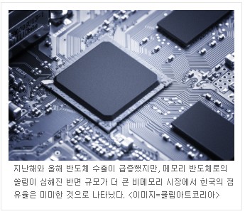 한국의 반도체 수출이 호조를 보이고 있지만, 메모리 시장에 치중된 반면 보다 규모가 큰 비메모리 시장에서는 존재감이 미미하다. 비메모리 시장을 키우고 팹리스 생태계를 빠르게 강화하기 위해 M&A 전략을 도입할 필요성이 제기된다.