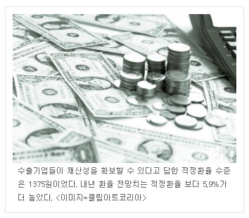 수출기업들은 내년 평균 환율이 올해보다 더 오를 것으로 내다보는 것으로 나타났다.