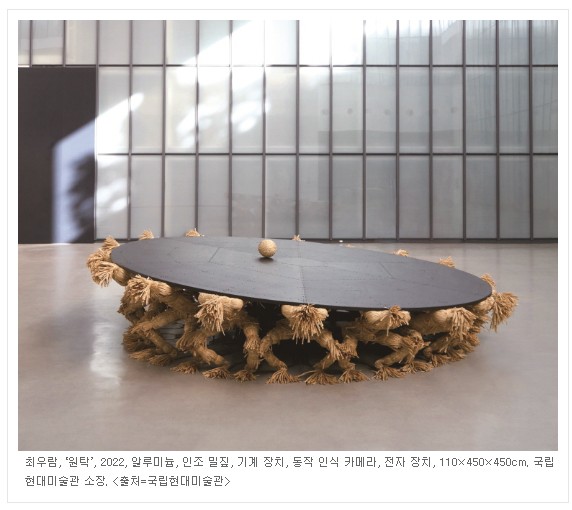 욕망은 최우람을 통해 우리가 살고 있는 사회를 뚫고 나와 기계 생명체로 우리 앞에 놓인다. 그가 보여주는 우리의 욕망은 금빛 건축물이며, 자기의 꼬리를 먹는 뱀이며, 머리를 쟁취하기 위해 끊임없이 움직이는 밀짚맨이다. 앞뒤가 분간되지 않는 방주이고, 서로 다른 곳을 가리키는 두 선장과 제임스 웹이다. 욕망은 무한히 증식하는 공간과 빠져나갈 수 없는 출구를 만든다. 욕망은 결코 보이지 않는 어떤 것이 아니다. (중기이코노미 객원=안진국 미술비평가, 홍익대 초빙교수)