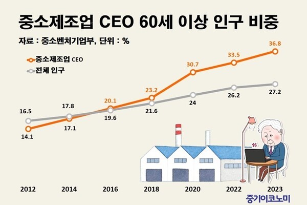 대한민국 제조 현장에서 고령화 속도가 가파르게 진행되면서, 수십 년간 쌓아온 산업 노하우가 전수되지 못한 채 사라질 위기에 처했다. 중소벤처기업부에 따르면, 경영자가 60세 이상인 중소기업 비중은 전체의 3분의 1에 달할 정도로 급증했다.